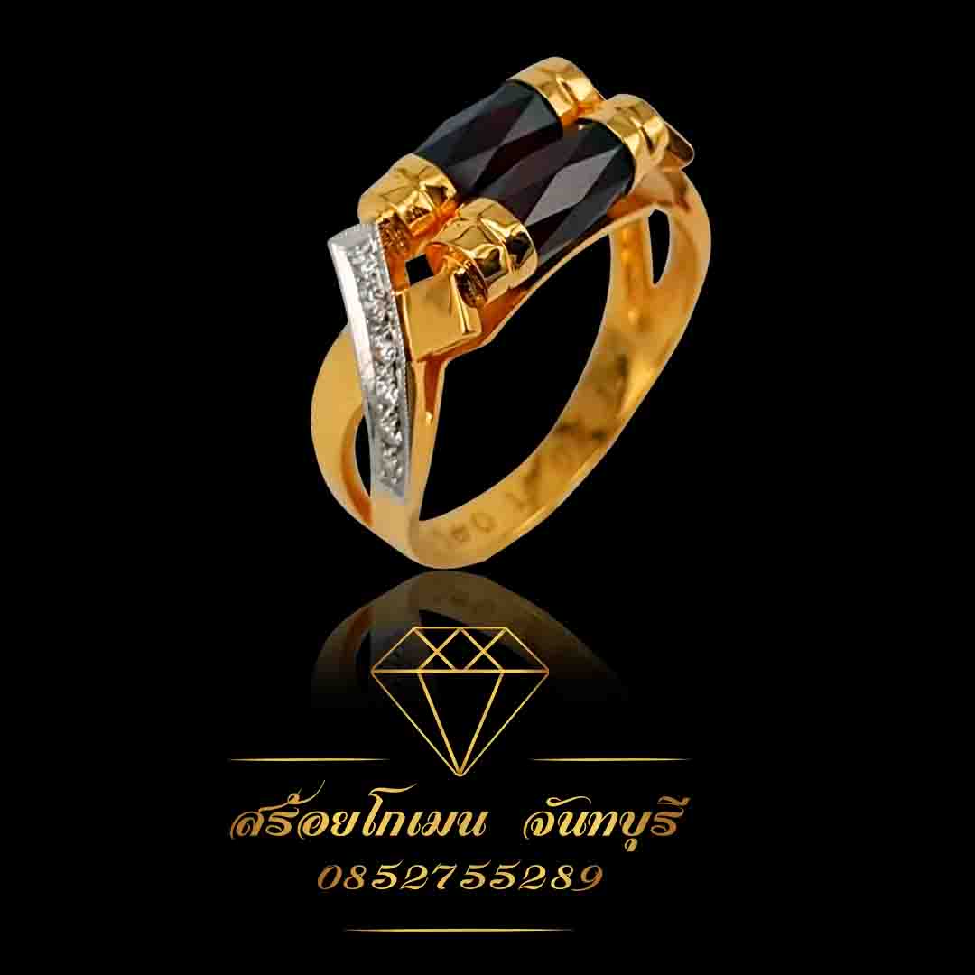 แหวนโกเมน 2 เม็ด ฝังเพชร