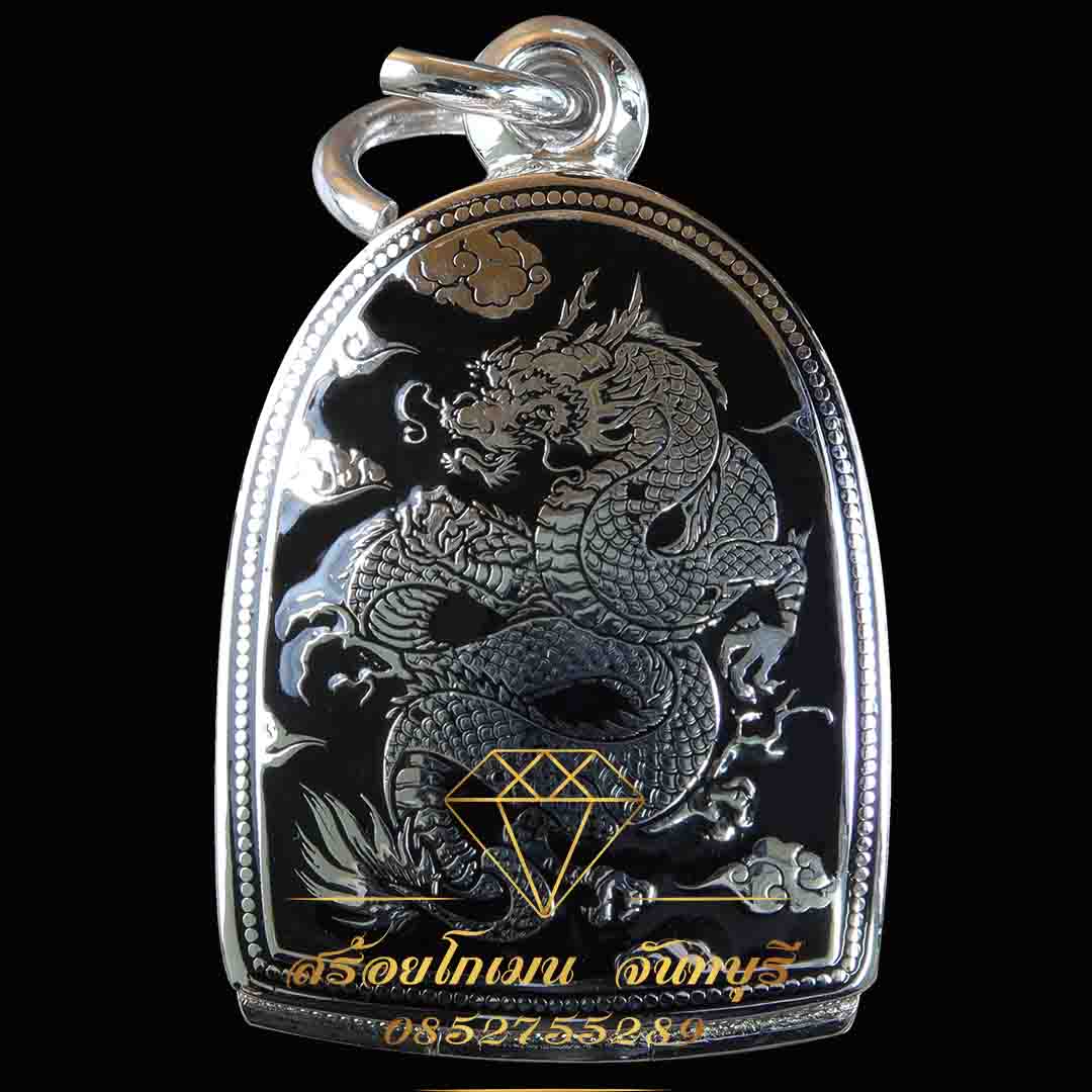 กรอบตลับเงิน หลวงพ่อเงิน แกะลายมังกร