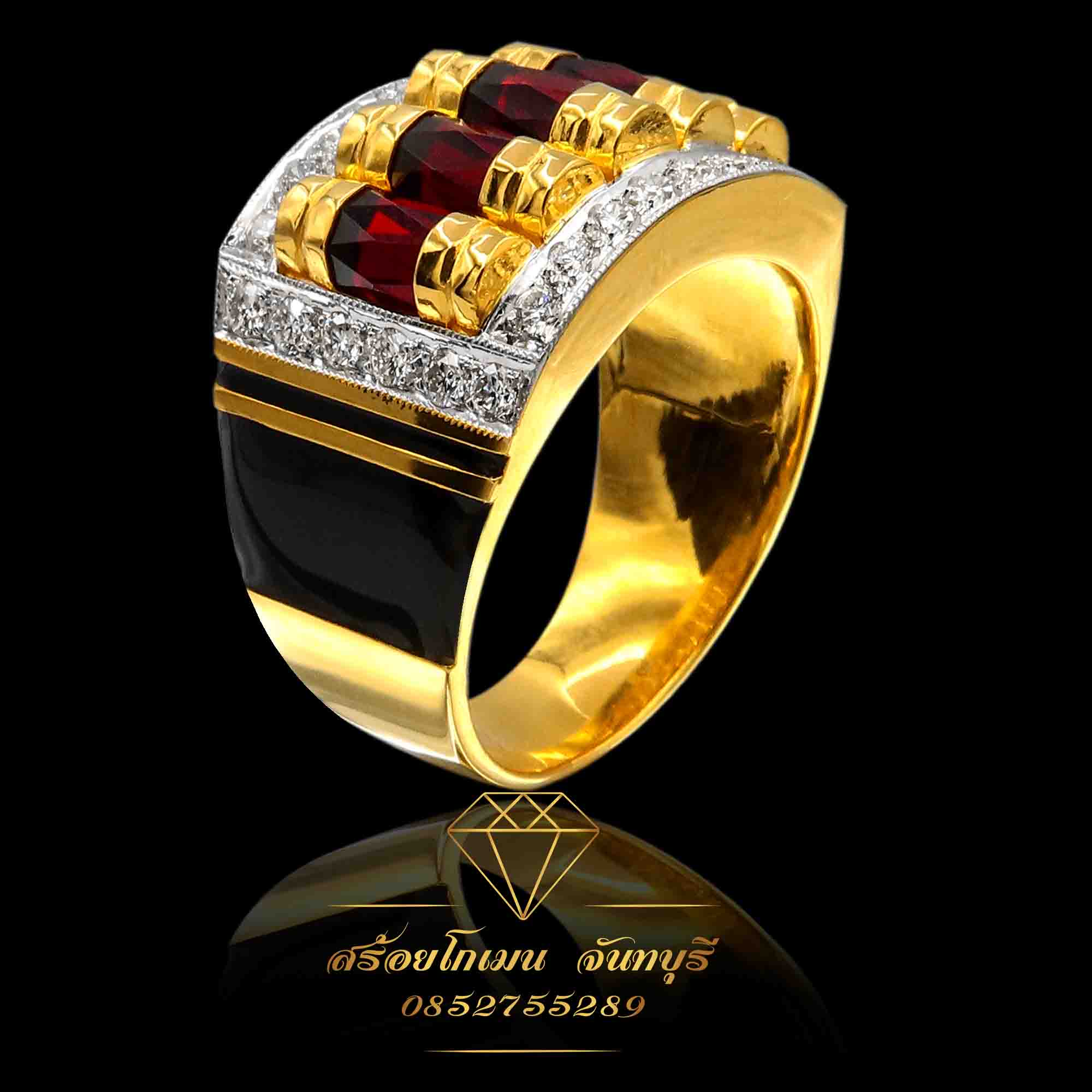 แหวนโกเมน 5 เม็ด ฝังเพชร