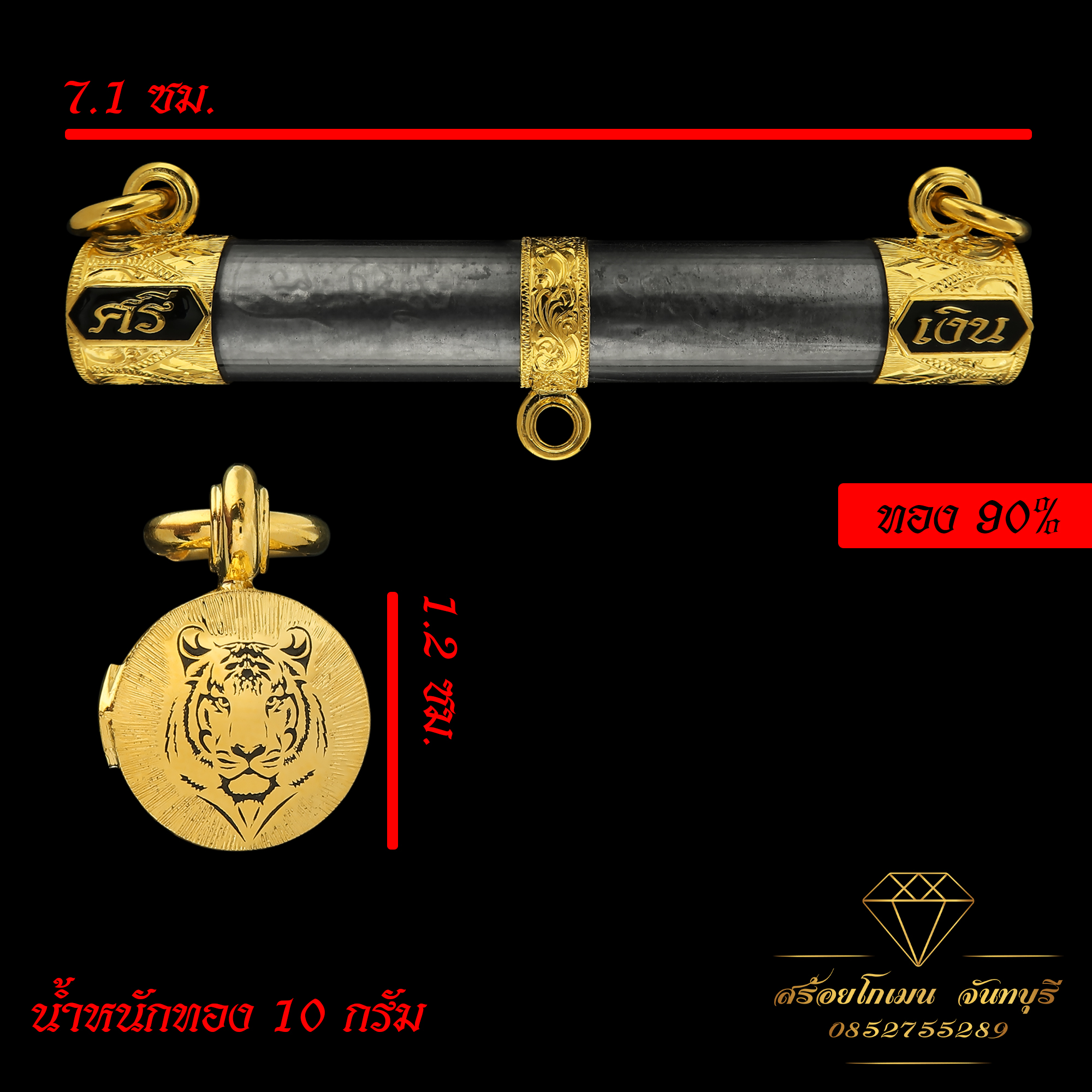 ทอง 10 กรัม แกะลายเสือ ลงยาดำ