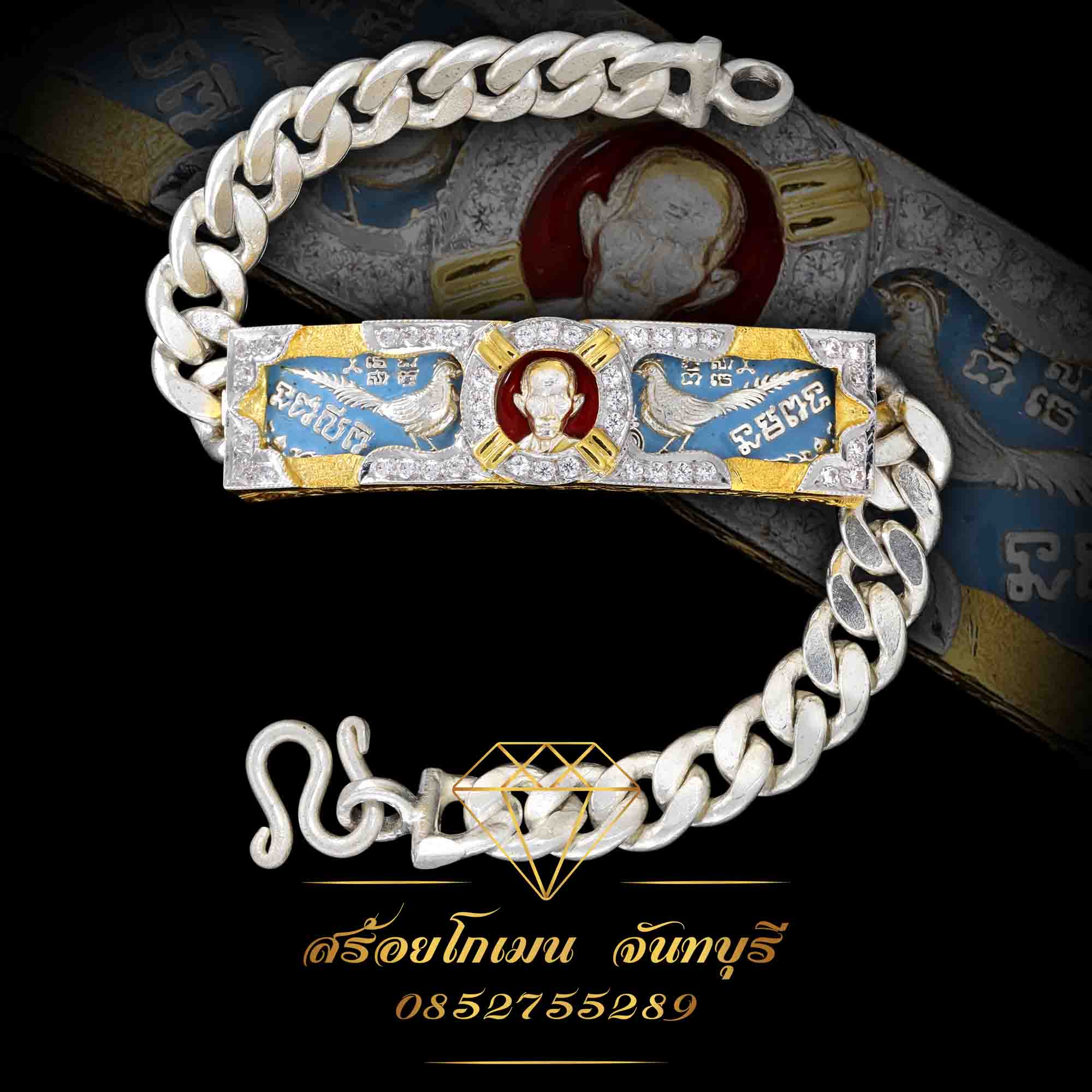 เลสเงินหุ้มทองฝังเพชร หลวงพ่อรวย