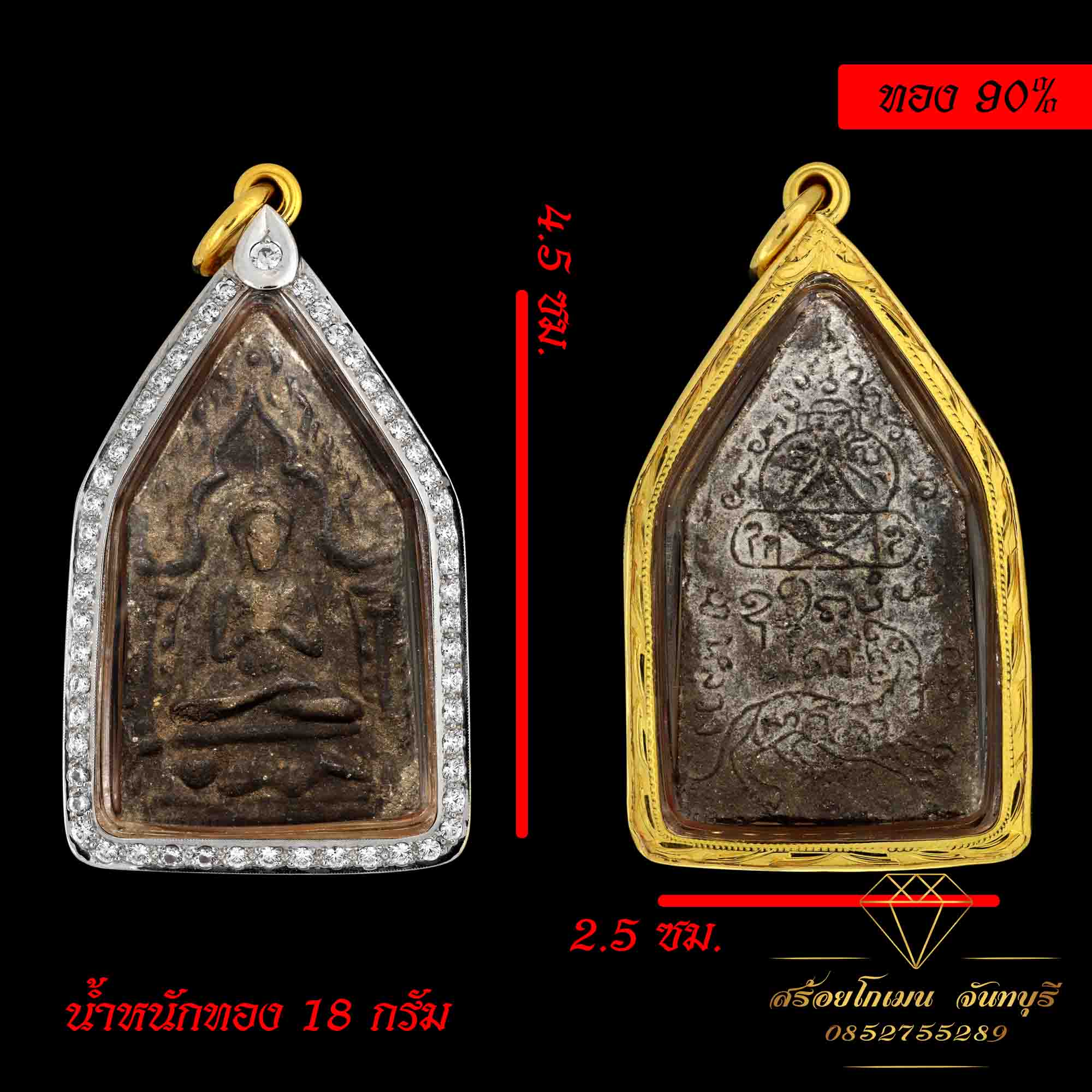 กรอบพระฝังเพชรแท้ ทอง 90%